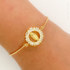 Minimalist chain bracelet with Virgin Mary Pendant lined with Cubic Zirconia. Slip into the bracelet and secure with slide lock.